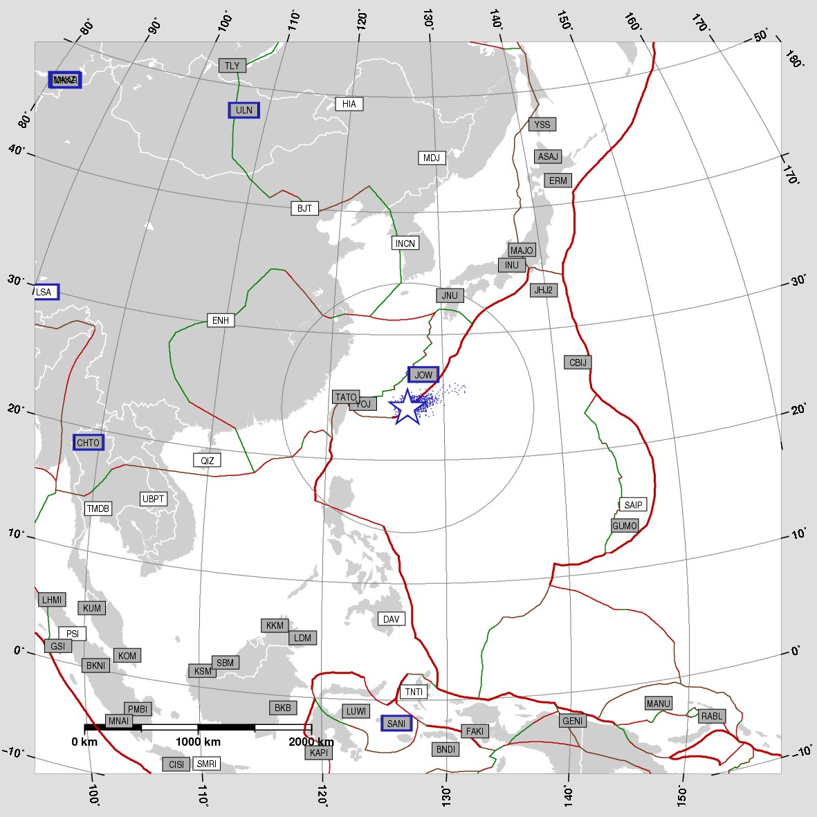 km or more from the earthquake epicenter.