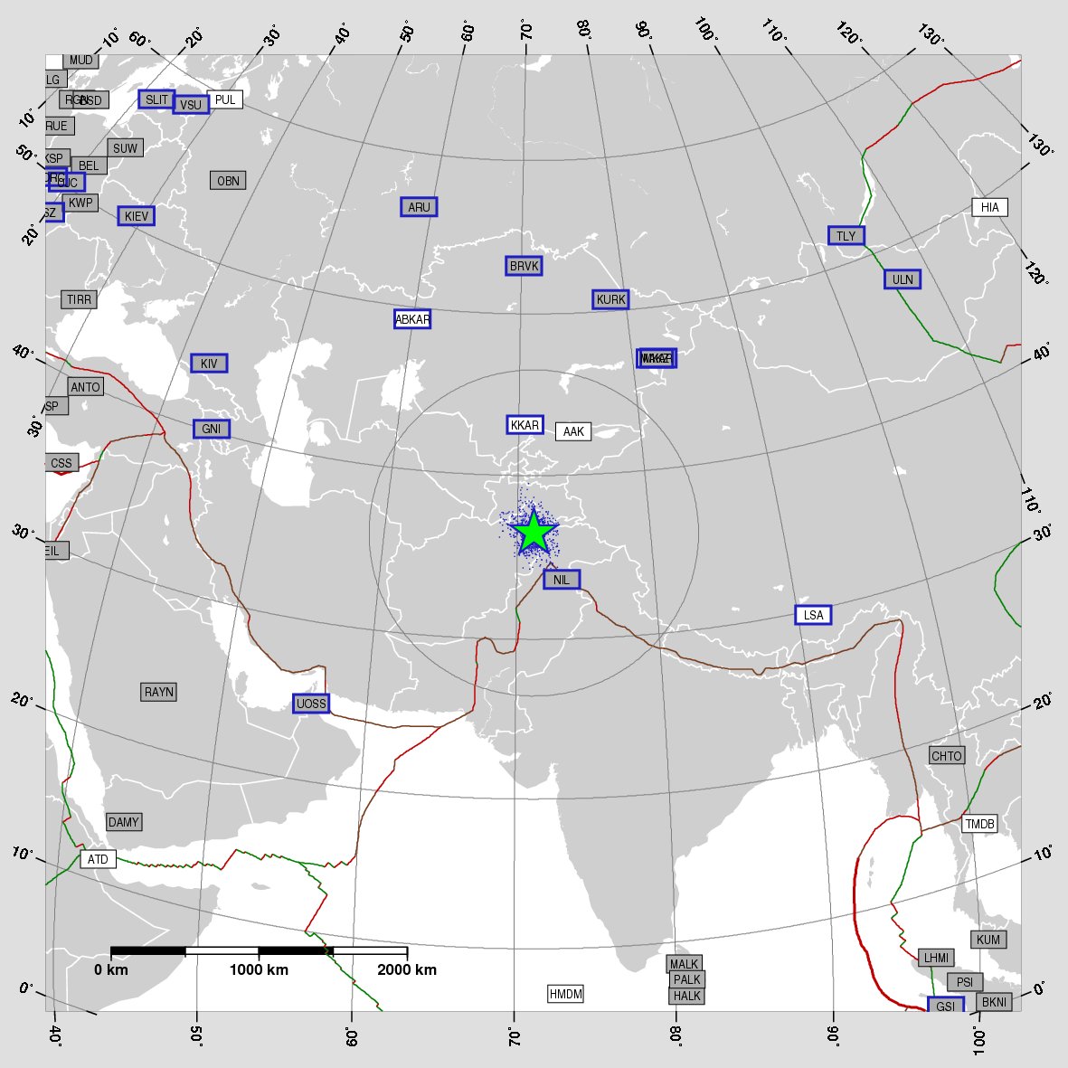 km or more from the earthquake epicenter.